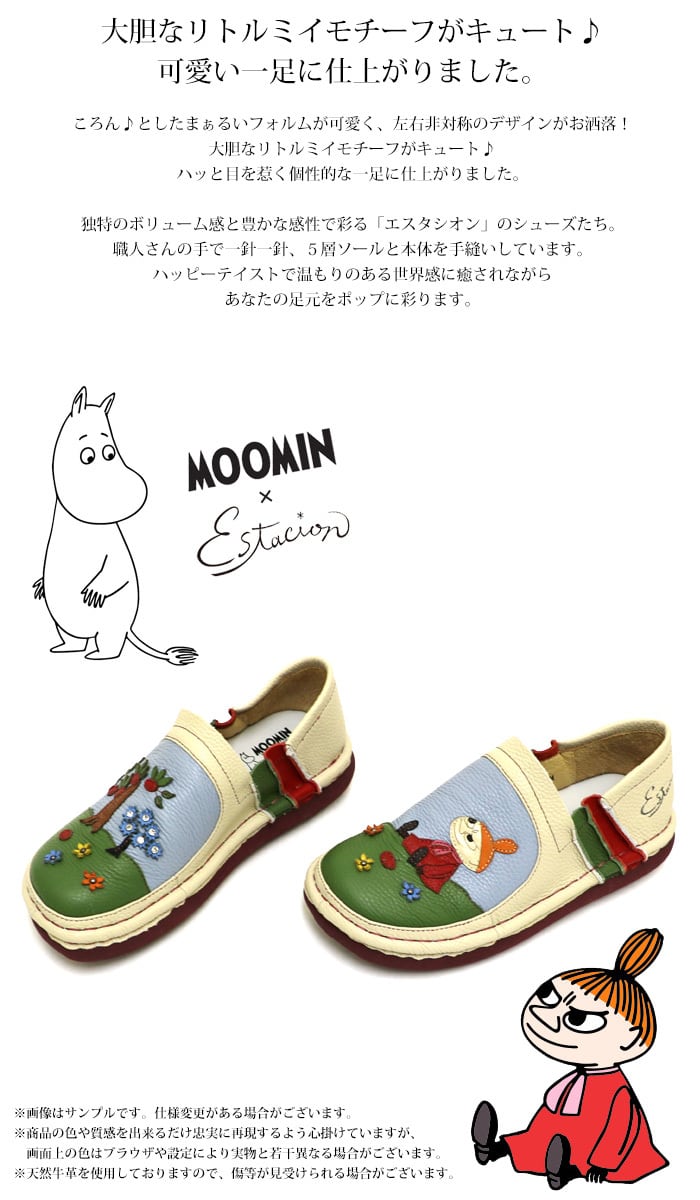 スリッポン.エスタシオン.スニーカー.靴.レディース.estacion.ムーミン.moomin.キャラクター.レザー.コンフォート.フラット.新作.軽量.本革.歩きやすい.カジュアル.SS.S.M.L.LL.22.0cm.22.5cm.23.0cm.23.5cm.24.0cm.24.5cm.25.0cm