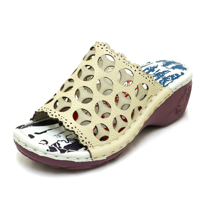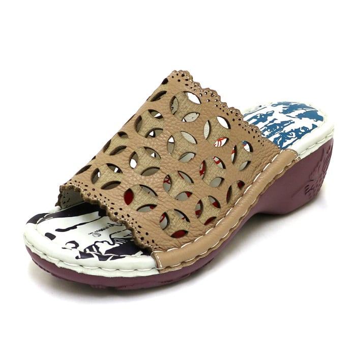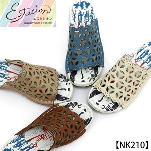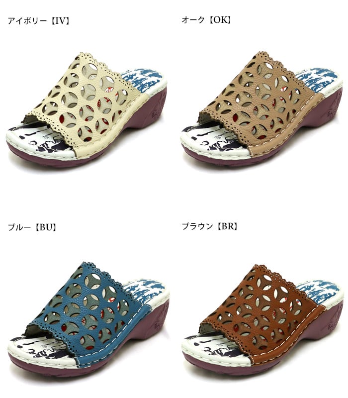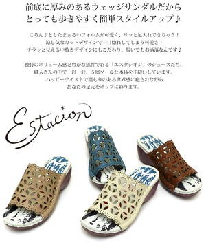 NK210【レディース】Estacion~エスタシオン~・カットデザイン本革ウェッジミュールサンダル