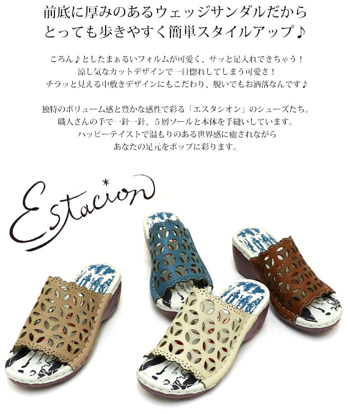 サンダル.ミュール.エスタシオン.靴.レディース.estacion.本革.新作.ブランド.軽量.カジュアル.ウェッジ.歩きやすい.カラフル.レザー.厚底.ローヒール.SS.S.M.L.LL.22.0cm.22.5cm.23.0cm.23.5cm.24.0cm.24.5cm.25.0cm