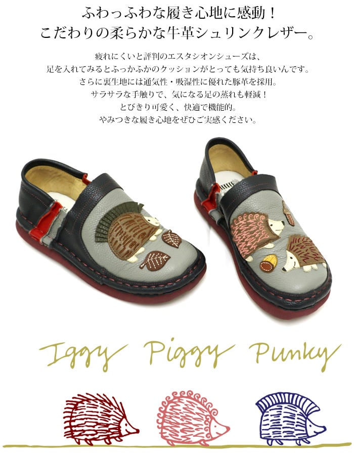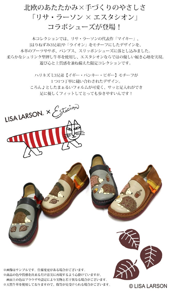 TGE672【レディース】リサ・ラーソン×Estacion~エスタシオン~・はりねずみモチーフ本革スリッポンシューズ