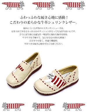 TGE678【レディース】リサ・ラーソン×Estacion~エスタシオン~・マイキーモチーフ本革スリッポンシューズ
