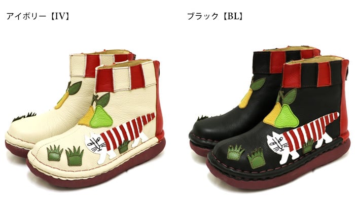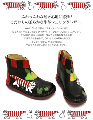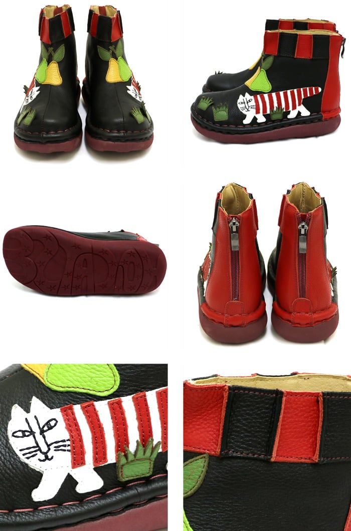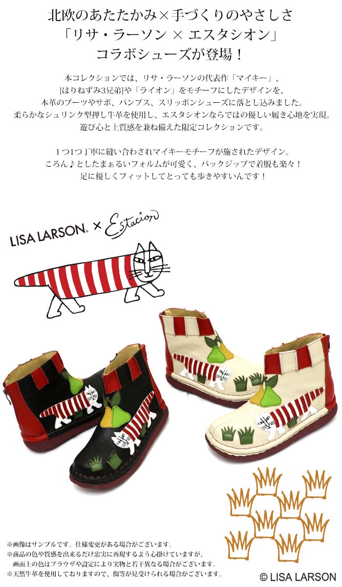 TGE675【レディース】リサ・ラーソン×Estacion~エスタシオン~・マイキーモチーフ本革ショートブーツ