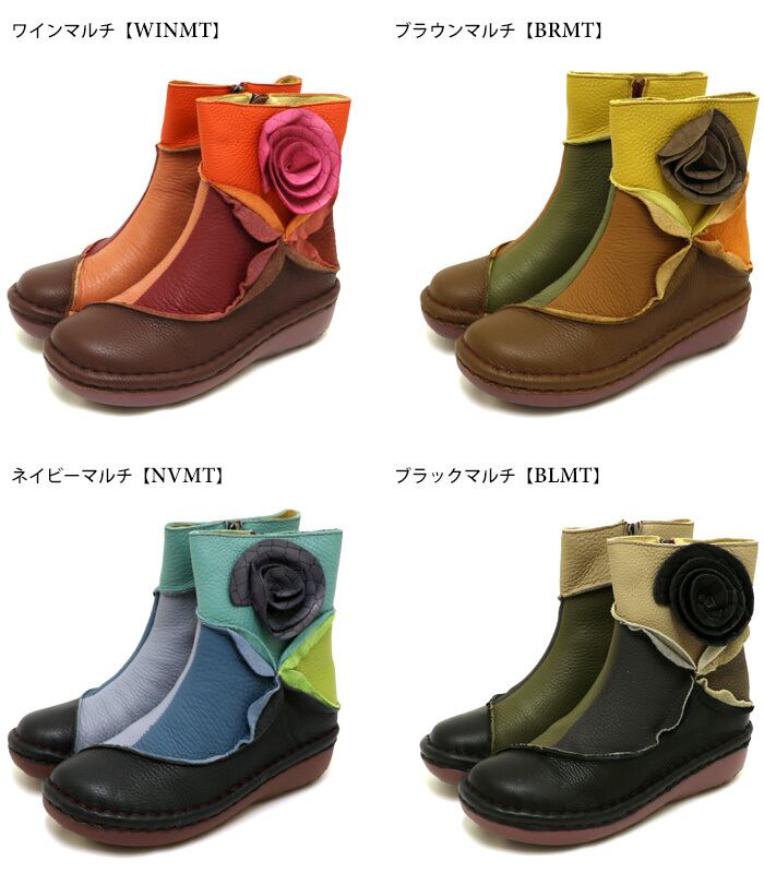 ブーツ.エスタシオン.靴.サイドゴア.レディース.estacion.えすたしおん.本革.ショート.ミドル.ブランド.新作.花.フラワー.カラフル.フラット.歩きやすい.レザー.カジュアル.SS.S.M.L.LL.22.0cm.22.5cm.23.0cm.23.5cm.24.0cm.24.5cm.25.0cm