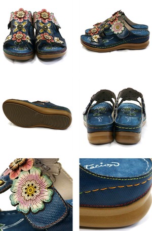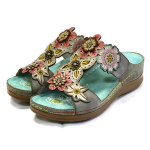 2522-1【レディース】Estacion~エスタシオン~・エスニック調フラワーカット本革ミュールサンダル