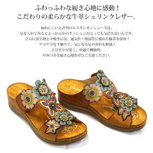 サンダル.ミュール.エスタシオン.靴.レディース.estacion.本革.ブランド.軽量.歩きやすい.フラワー.お花.エスニック調.レザー.厚底.ローヒール.新作.SS.S.M.L.LL.22.0cm.22.5cm.23.0cm.23.5cm.24.0cm.24.5cm