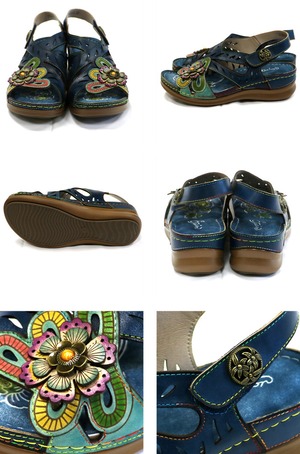 2522-5【レディース】Estacion~エスタシオン~・エスニック調フラワーカット本革ストラップサンダル