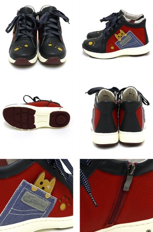 杉浦様専用 Y84601【レディース】Estacion~エスタシオン~・ワンちゃんモチーフエアサイクル本革2wayスニーカーNV/RD Mサイズ