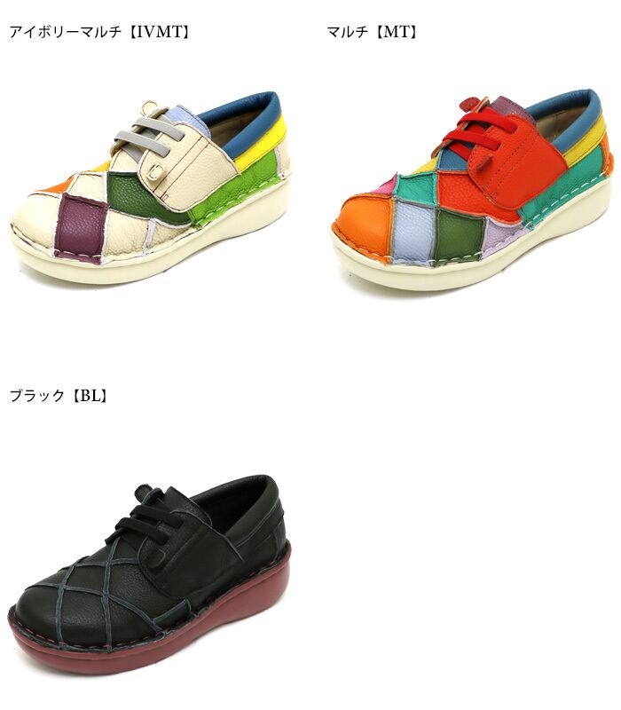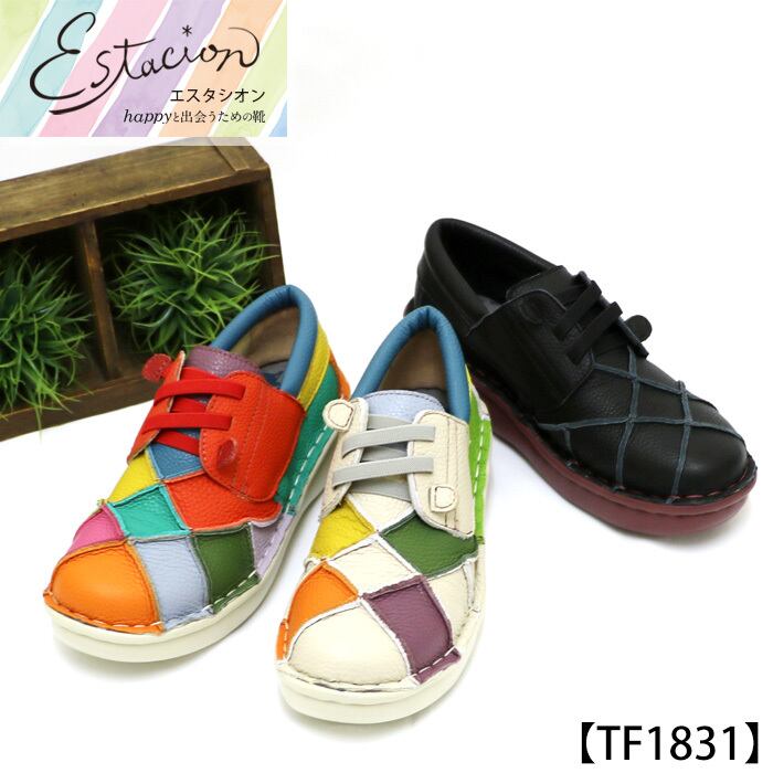 TF1831【レディース】Estacion~エスタシオン~・パッチワークデザイン本革レースアップシューズ