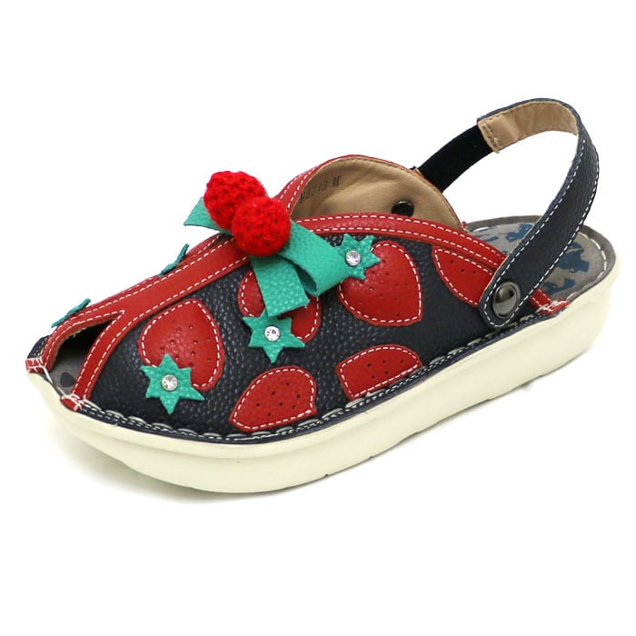 H8318【レディース】Estacion~エスタシオン~・いちごモチーフ本革2wayストラップサンダル