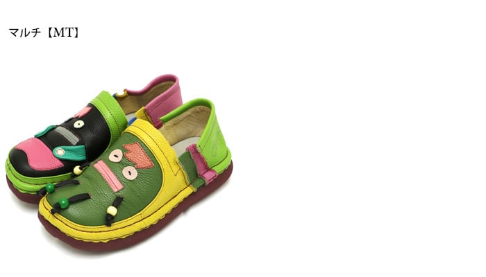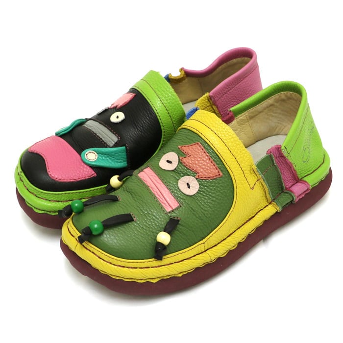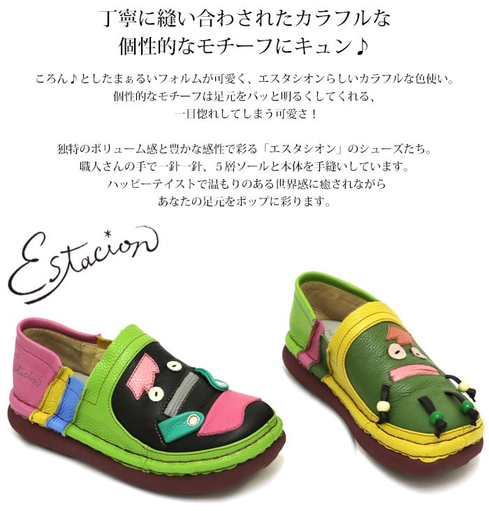 TGE727【レディース】Estacion~エスタシオン~・モンスターモチーフ本革スリッポンシューズ