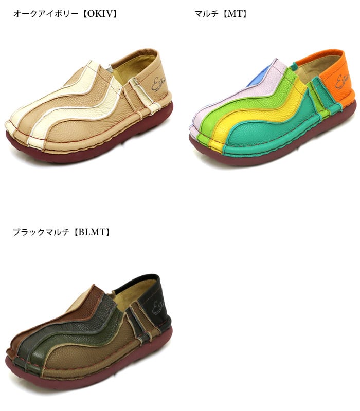 TGXE695【レディース/受注生産可】Estacion~エスタシオン~・波ボーダーデザイン本革スリッポンシューズ
