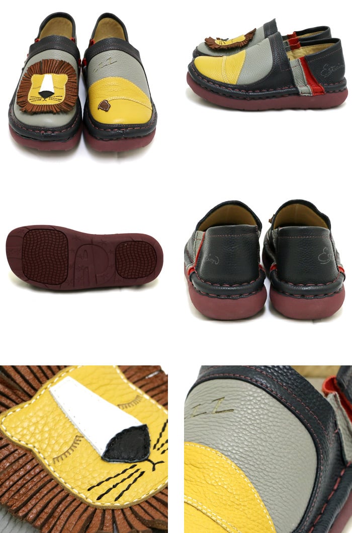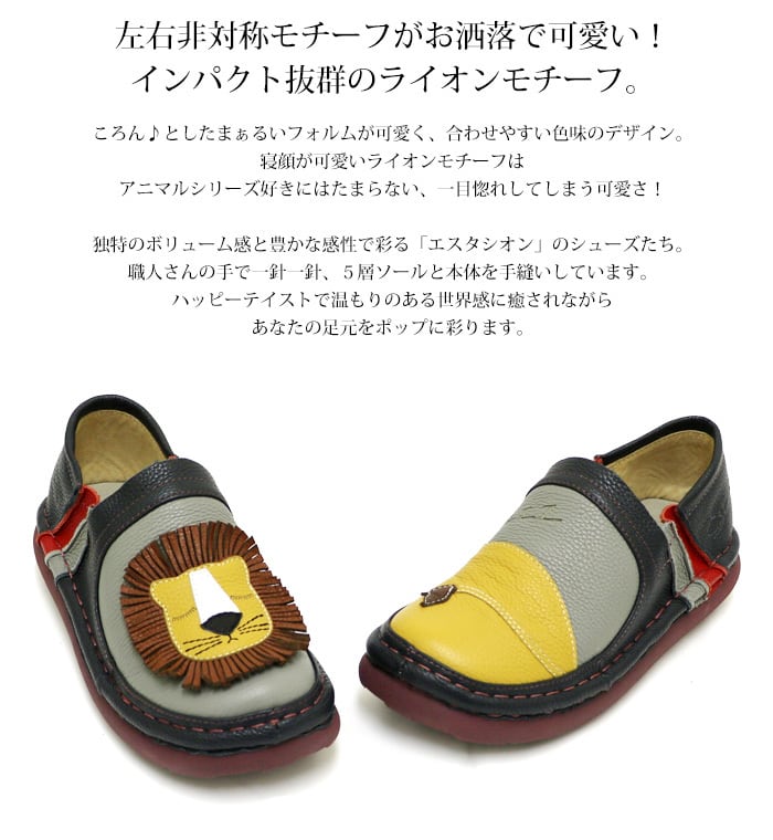 TGXE698【レディース】Estacion~エスタシオン~・ライオンモチーフ本革スリッポンシューズ