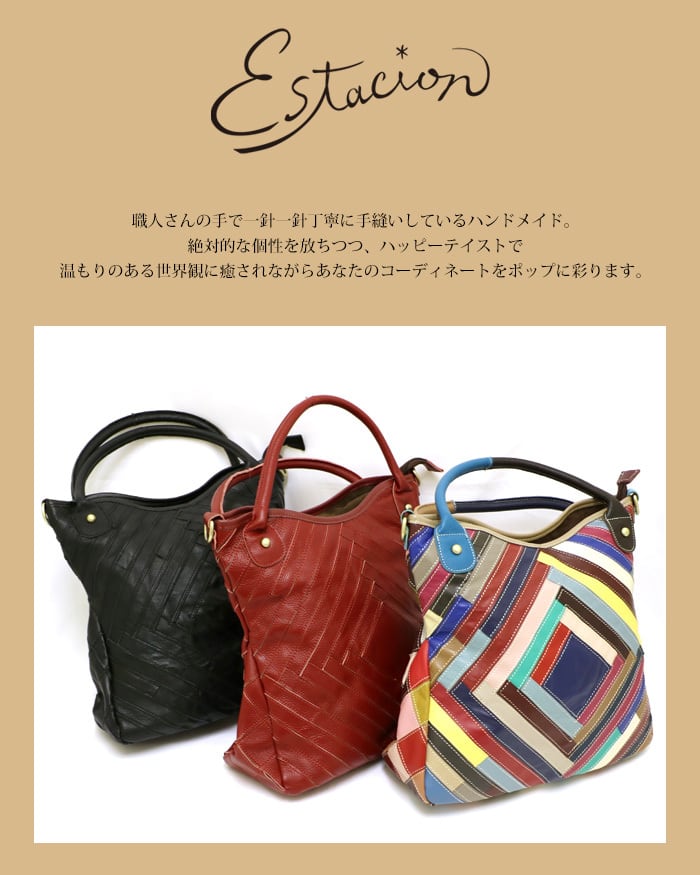 バッグ.エスタシオン.靴.レディース.estacion.本革.ブランド.ショルダーバッグ.ハンドバッグ.トートバッグ.2way.カラフル.マルチ.レザー.持ち手.斜め
