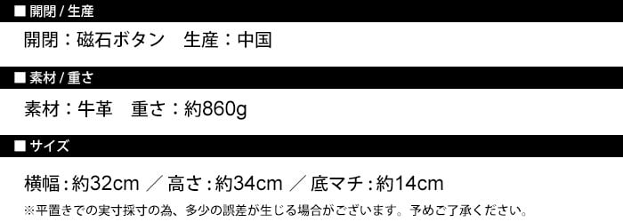 横幅:約32cm / 高さ:約34cm / 底マチ:約14cm