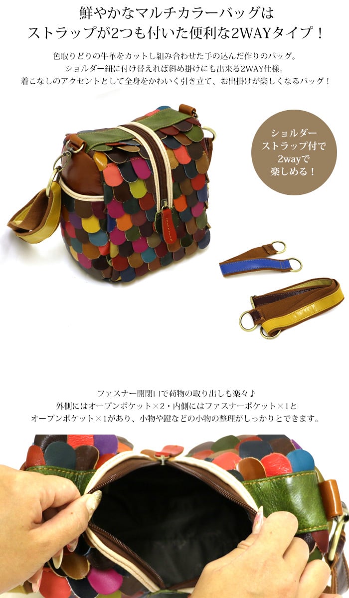 バッグ.エスタシオン.靴.レディース.estacion.本革.ブランド.ショルダーバッグ.ハンドバッグ.2way.カラフル.マルチ.レザー.持ち手.斜め
