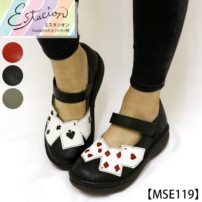 MSE119【レディース/受注生産可】Estacion~エスタシオン~・トランプデザイン・ストラップパンプス