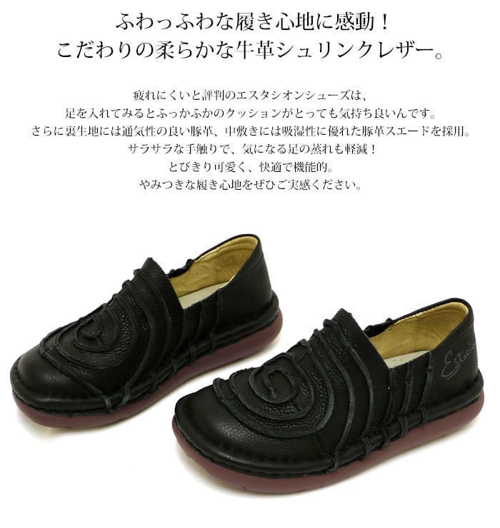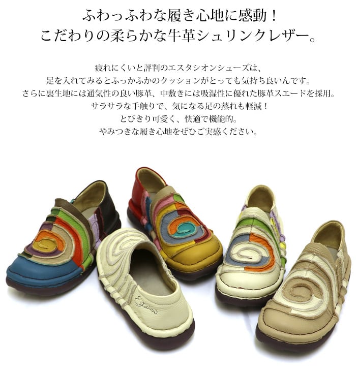 スリッポン.エスタシオン.スニーカー.靴.レディース.estacion.レザー.コンフォート.フラット.ローヒール.軽量.うずまき.渦巻き.歩きやすい.新作.カジュアル.本革.人気.SS.S.M.L.LL.22.0cm.22.5cm.23.0cm.23.5cm.24.0cm.24.5cm.25.0cm