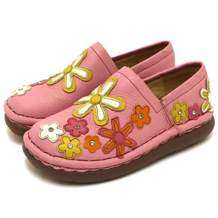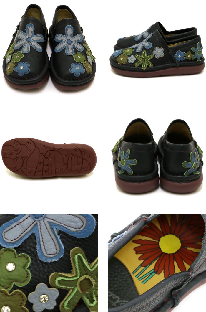 スリッポン.靴.レディース.エスタシオン.スニーカー.本革.レザー.estacion.ブランド.フラワー.花.ストーン.キラキラ.カラフル.フラット.カジュアル.軽量.歩きやすい.柔らかい.SS.S.M.L.22.0cm.22.5cm.23.0cm.23.5cm.24.0cm.24.5cm