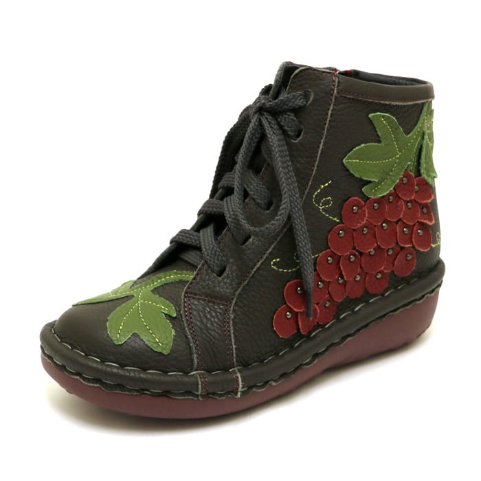 MS02A【レディース/受注生産可】Estacion~エスタシオン~・ぶどうモチーフ本革レースアップスニーカー