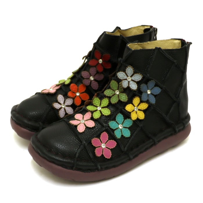 TG145-2【レディース/受注生産可】Estacion~エスタシオン~・本革フラワーモチーフショートブーツ