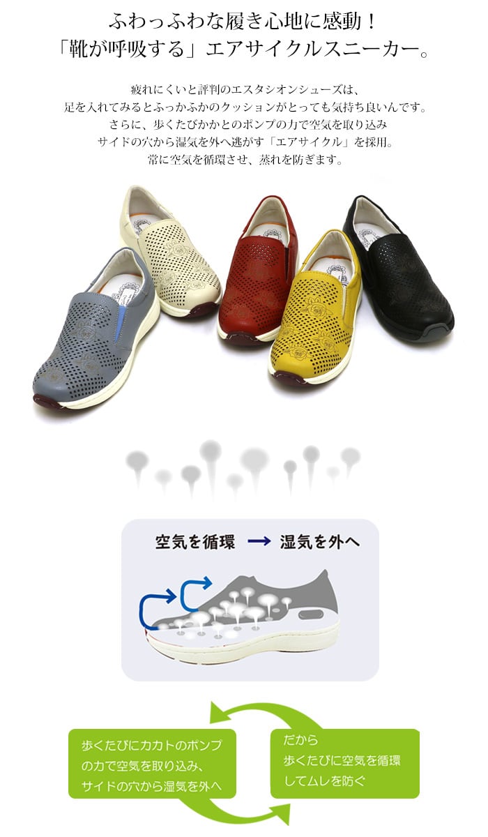 スリッポン.スニーカー.エスタシオン.靴.レディース.estacion.本革.ブランド.軽量.カジュアル.新作.コンフォート.歩きやすい.エアサイクル.空気循環.ソール.レザー.カジュアル.花柄.パンチング.SS.S.M.L.LL.22.0cm.22.5cm.23.0cm.23.5cm.24.0cm.24.5cm.25.0cm