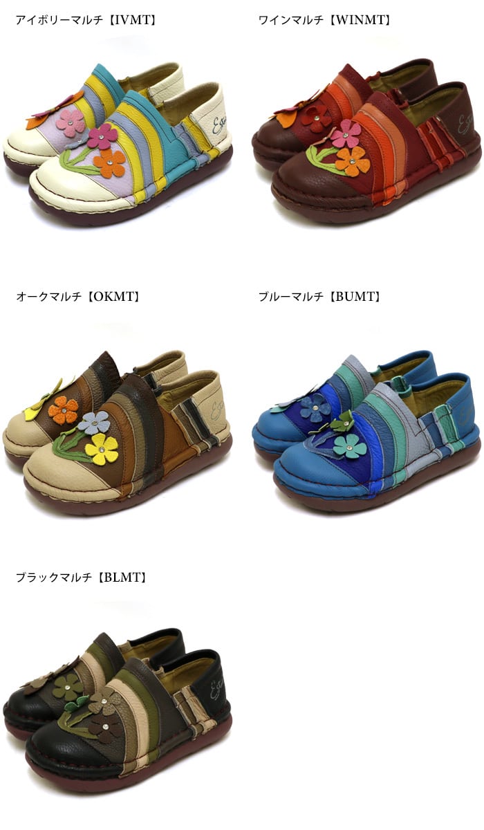 スリッポン.靴.レディース.エスタシオン.スニーカー.本革.レザー.estacion.ブランド.フラワー.花.新作.マルチ.カラフル.フラット.カジュアル.軽量.歩きやすい.SS.S.M.L.LL.22.0cm.22.5cm.23.0cm.23.5cm.24.0cm.24.5cm.25.0cm