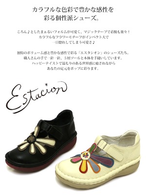 パンプス.エスタシオン.靴.レディース.本革.estacion.ブランド.軽量.ストラップ.カジュアル.新作.フラット.歩きやすい.柔らかい.花.フラワー.お洒落.レザー.ストラップ.SS.S.M.L.LL.22.0cm.22.5cm.23.0cm.23.5cm.24.0cm.24.5cm.25.0cm