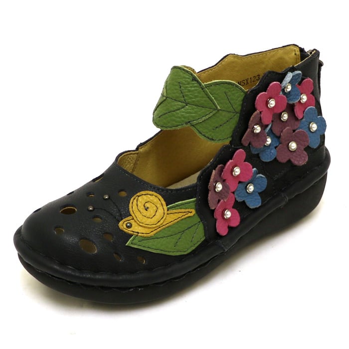 MSX123【レディース】Estacion~エスタシオン~・フラワーモチーフ本革ショートブーツ