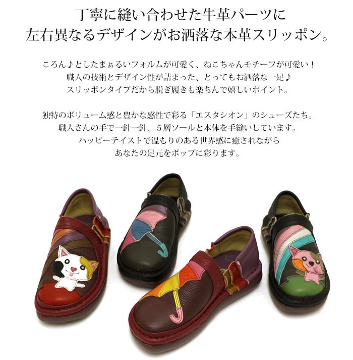 スリッポン.エスタシオン.スニーカー.靴.レディース.estacion.レザー.コンフォート.フラット.ローヒール.軽量.カラフル.アニマル.ネコ.歩きやすい.新作.カジュアル.本革.人気.SS.S.M.L.LL.22.0cm.22.5cm.23.0cm.23.5cm.24.0cm.24.5cm.25.0cm