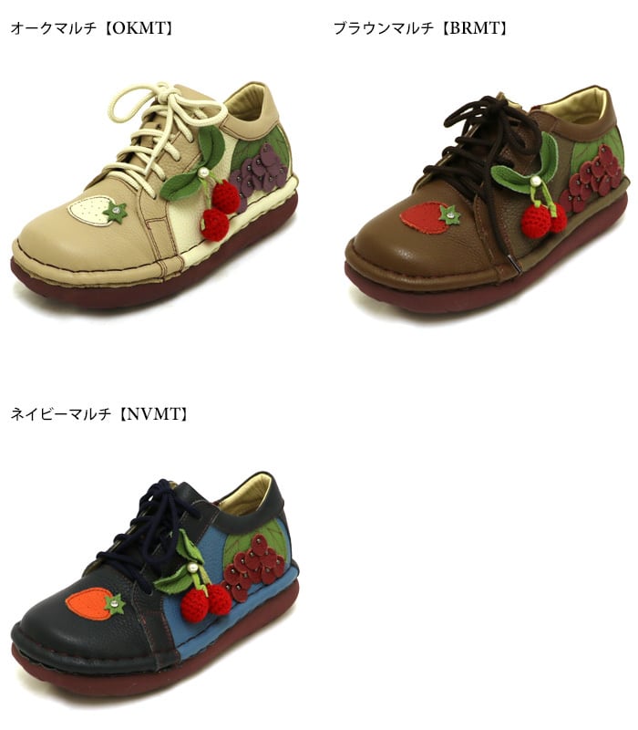 TGE358【レディース】Estacion~エスタシオン~・フルーツモチーフ本革レースアップシューズ