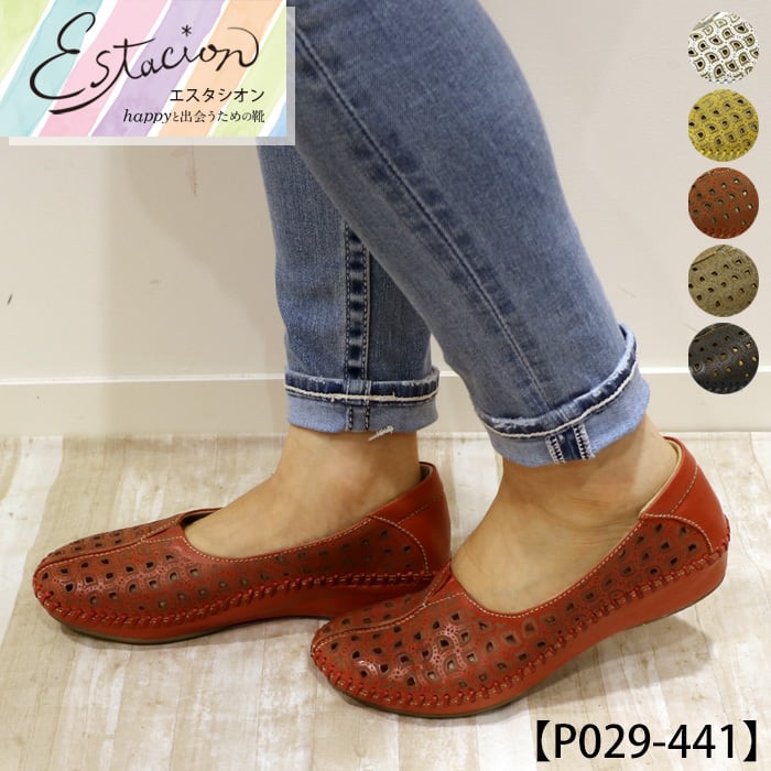 P029-441【レディース】Estacion~エスタシオン~・パンチングステッチ本革パンプス