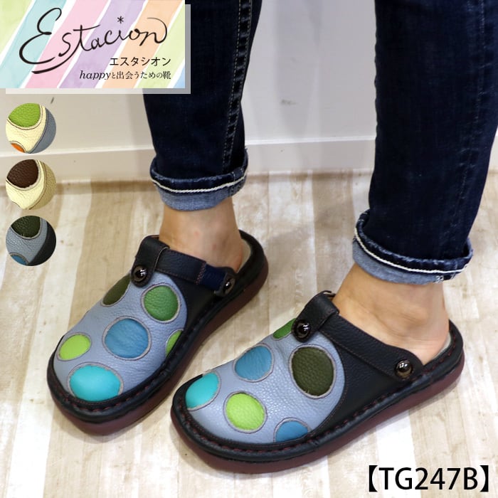 TG247B【レディース/受注生産可】Estacion~エスタシオン~・ドット柄2way本革サボシューズ
