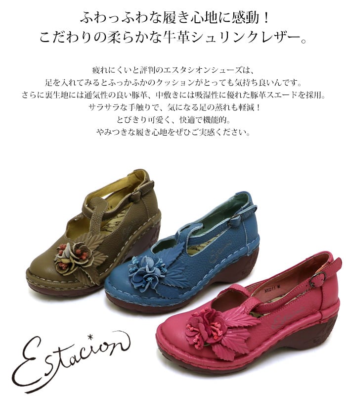 パンプス.エスタシオン.靴.レディース.estacion.ストラップ.本革.新作.ブランド.軽量.カジュアル.ウェッジ.歩きやすい.花.フラワー.レザー.厚底.ローヒール.ストラップ.SS.S.M.L.LL.22.0cm.22.5cm.23.0cm.23.5cm.24.0cm.24.5cm.25.0cm