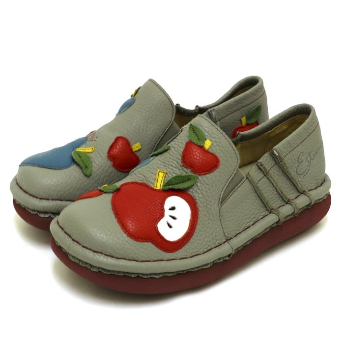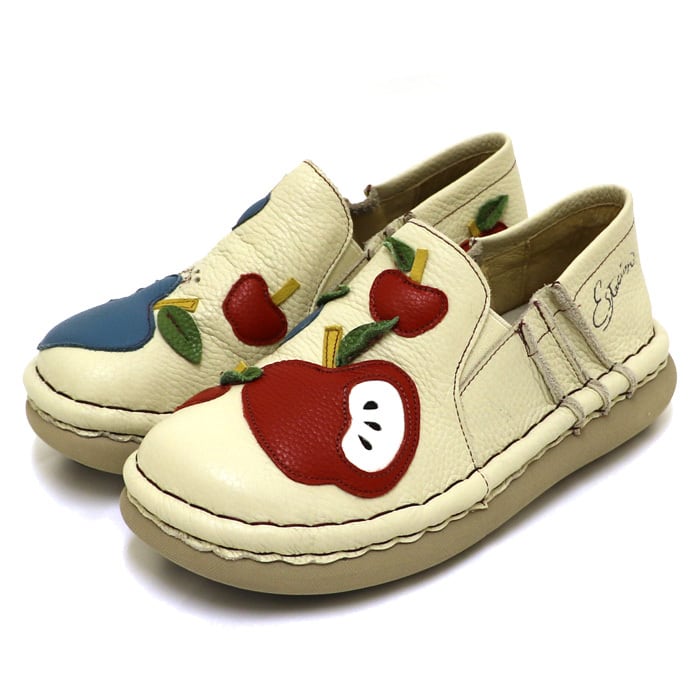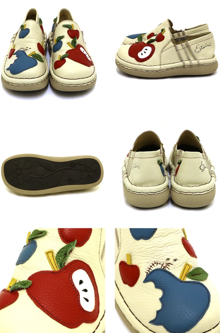 TGX377【レディース/受注生産可】Estacion~エスタシオン~・りんごモチーフ本革スリッポンシューズ