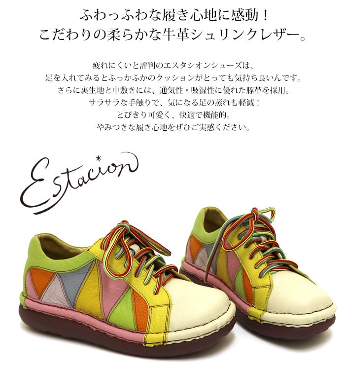 スニーカー.靴.レディース.エスタシオン.スリッポン.本革.レザー.estacion.ブランド.メッシュ.カラフル.フラット.カジュアル.軽量.歩きやすい.レースアップ.新作.編み込み.SS.S.M.L.22.0cm.22.5cm.23.0cm.23.5cm.24.0cm.24.5cm