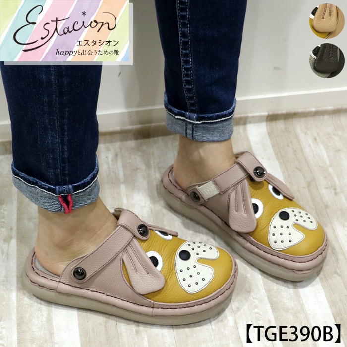 TGE390B【レディース/受注生産可】Estacion~エスタシオン~・ワンちゃんモチーフ2way本革サボシューズ