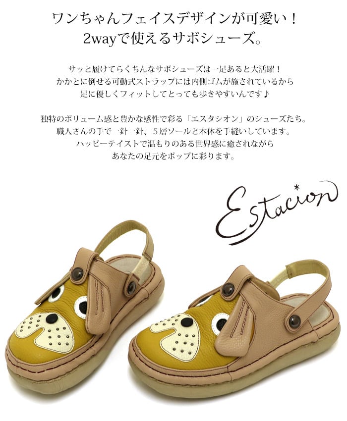 サボ.サンダル.エスタシオン.靴.レディース.estacion.本革.ブランド.軽量.カジュアル.疲れにくい.歩きやすい.2way.犬.ワンちゃん.レザー.フラット.ローヒール.SS.S.M.L.LL.22.0cm.22.5cm.23.0cm.23.5cm.24.0cm.24.5cm.25.0cm
