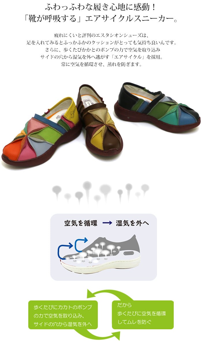 MLE2309【レディース】Estacion~エスタシオン~・カラフルエアサイクルスリッポンスニーカ