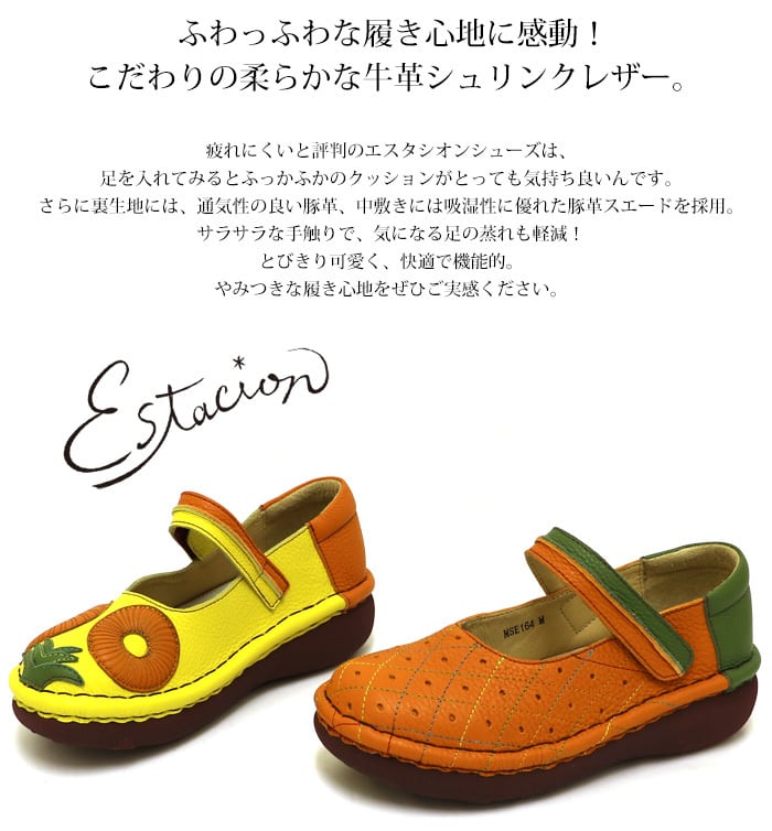 MSE164【レディース】Estacion~エスタシオン~・フルーツモチーフ本革ストラップパンプス