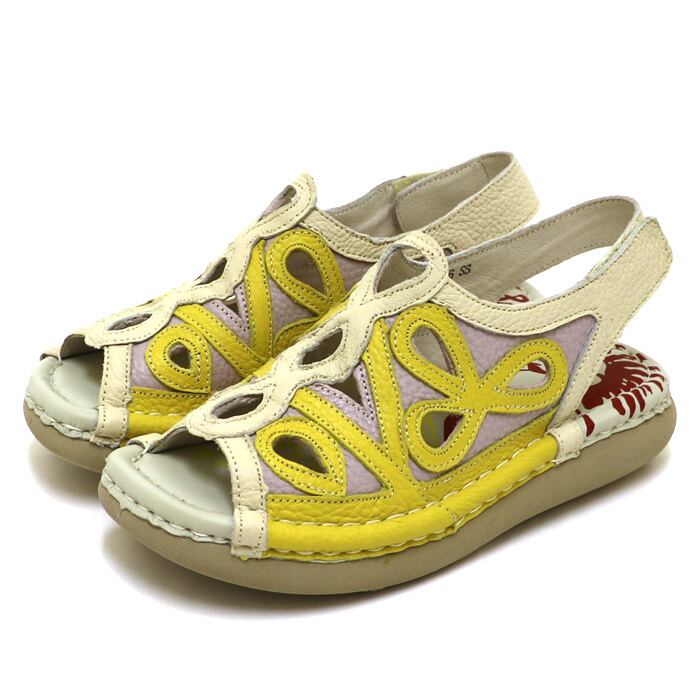 TGE506【レディース/受注生産可】Estacion~エスタシオン~・カラフル本革フラットサンダル