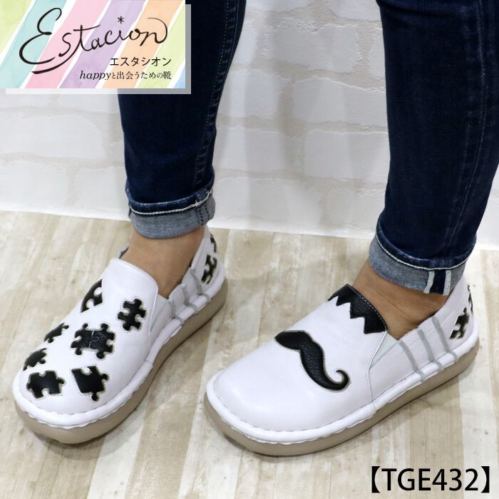TGE432【レディース】Estacion~エスタシオン~・お髭モチーフ本革スリッポンシューズ