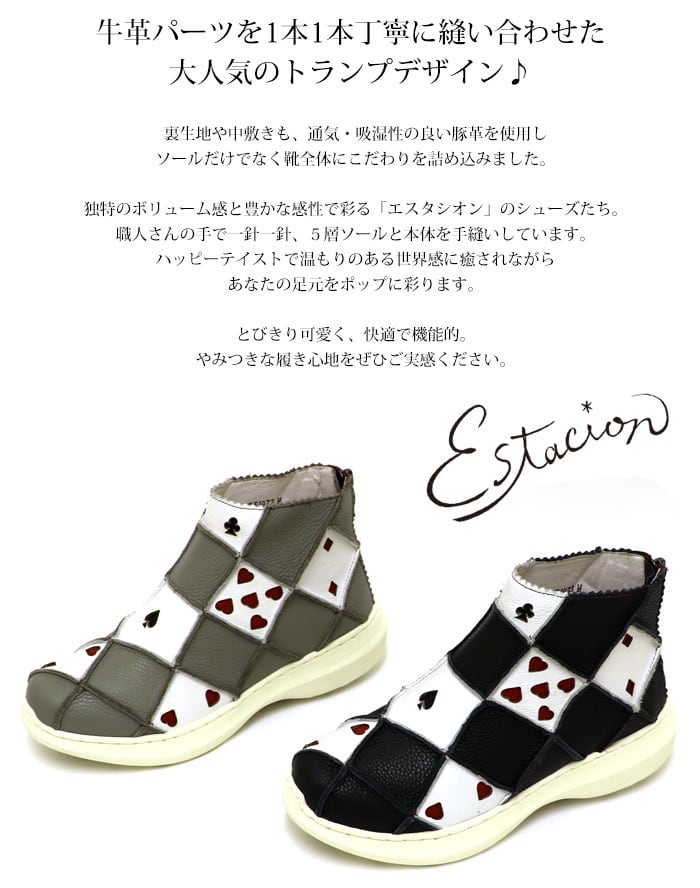 ブーツ.ショートブーツ.エスタシオン.靴.レディース.estacion.本革.ブランド.厚底.フラット.新作.疲れない.柔らかい.レザー.空気循環.ソール.カジュアル.ローヒール.トランプ.SS.S.M.L.LL.22.0cm.22.5cm.23.0cm.23.5cm.24.0cm.24.5cm.25.0cm