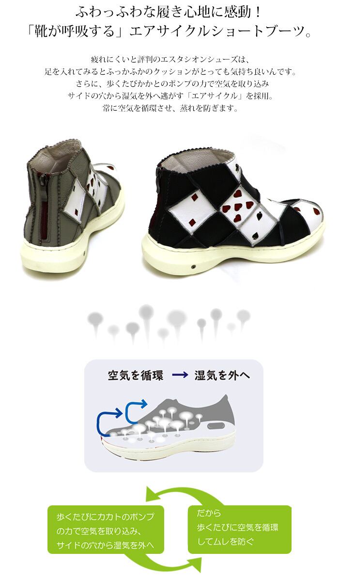 MLE1973【レディース】Estacion~エスタシオン~・トランプ柄モチーフエアサイクルショートブーツ