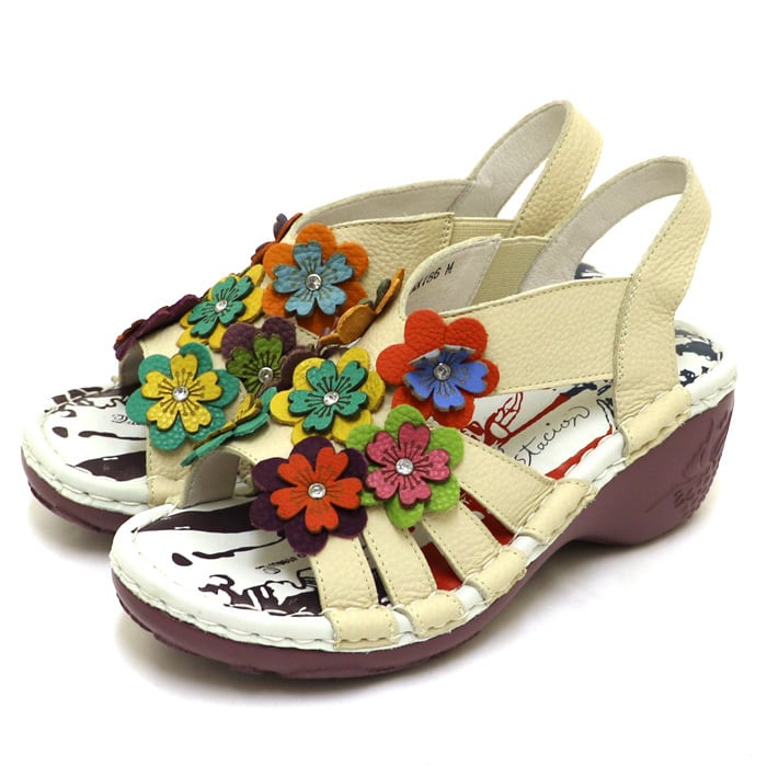 NK186【レディース】Estacion~エスタシオン~・フラワーモチーフ厚底本革サンダル