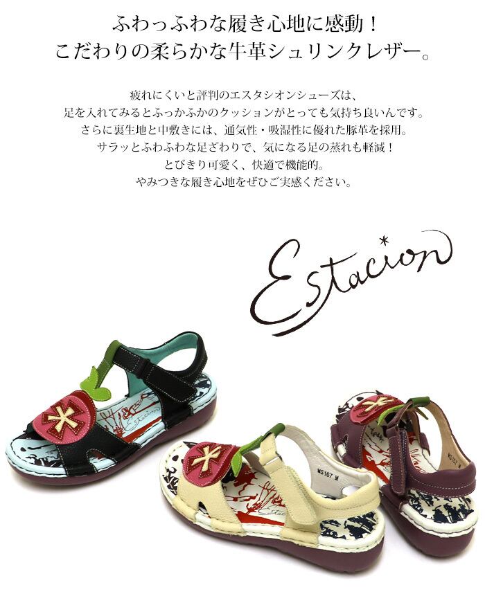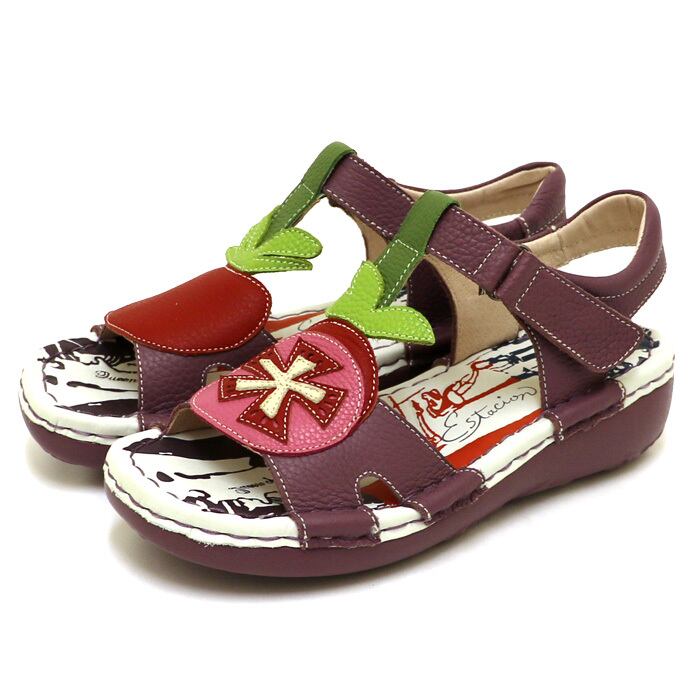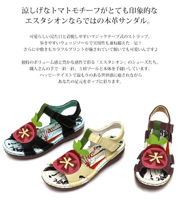 サンダル.エスタシオン.靴.レディース.estacion.本革.ブランド.軽量.コンフォート.歩きやすい.トマト.ストラップ.マジックテープ.レザー.ローヒール.厚底.フルーツ.SS.S.M.L.LL.22.0cm.22.5cm.23.0cm.23.5cm.24.0cm.24.5cm.25.0cm