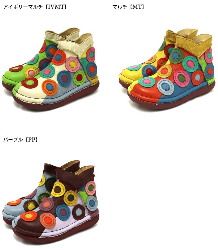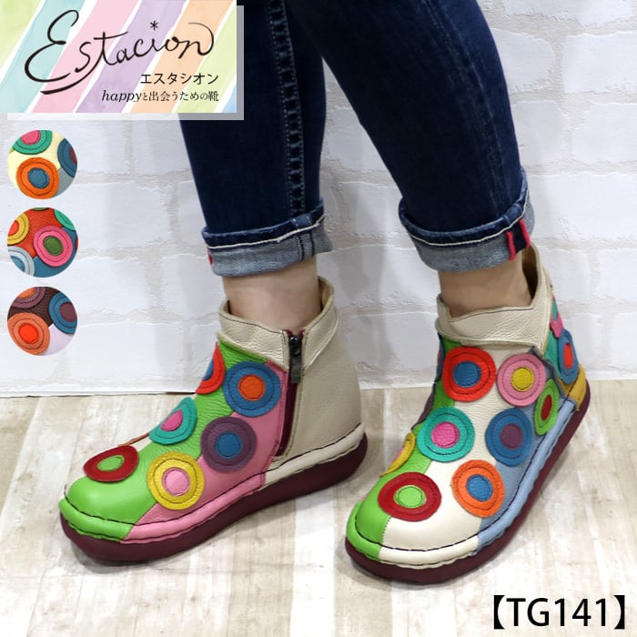 TG141【レディース/受注生産可】Estacion~エスタシオン~・カラフルモチーフ本革ショートブーツ