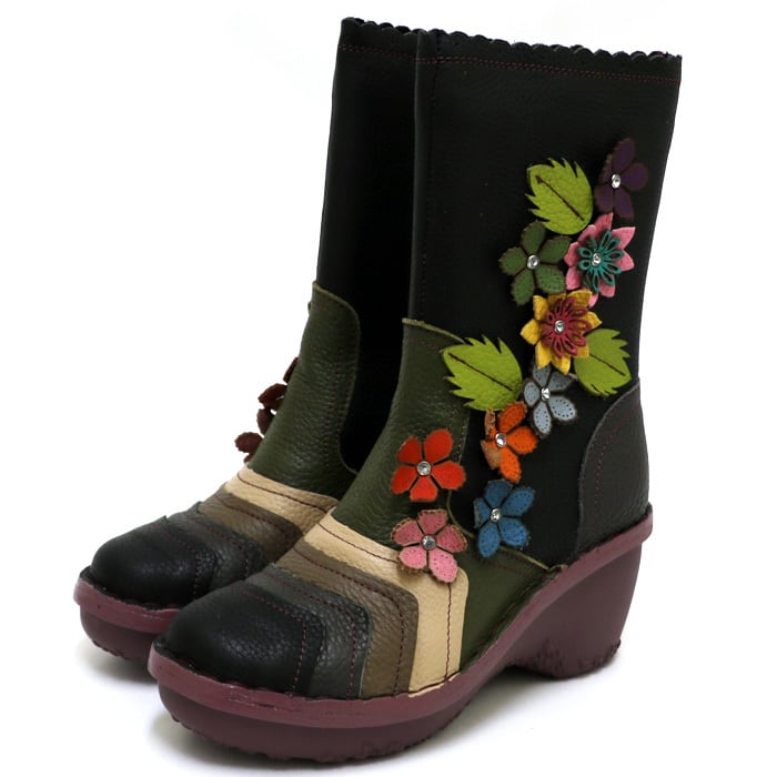 ブーツ.エスタシオン.靴.レディース.estacion.本革.ブランド.レザー.軽量.カジュアル.疲れにくい.新作.歩きやすい.ミドルブーツ.カラフル.フラワー.カジュアル.ローヒール.SS.S.M.L.LL.22.0cm.22.5cm.23.0cm.23.5cm.24.0cm.24.5cm.25.0cm