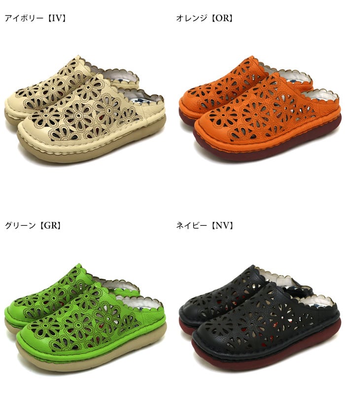 TGE489【レディース/受注生産可】Estacion~エスタシオン~・パンチングフラワー本革サボシューズ