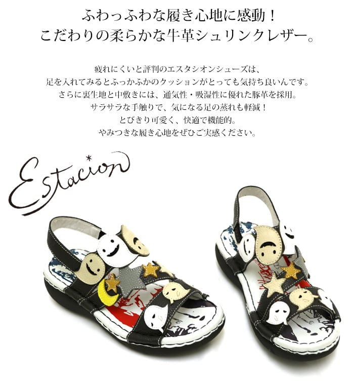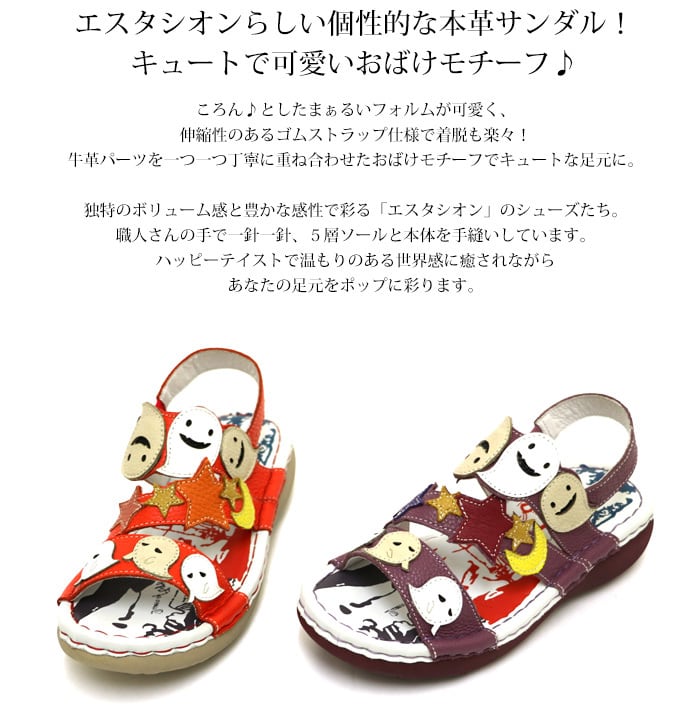 MSE184【レディース/受注生産可】Estacion~エスタシオン~・おばけモチーフ本革ストラップサンダル