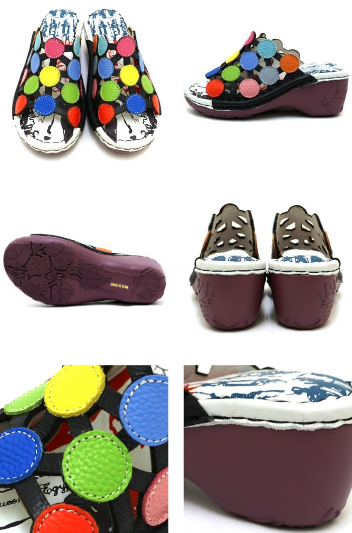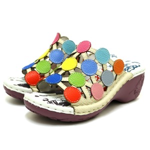 NK190【レディース】Estacion~エスタシオン~・カラフルドット厚底本革サンダル